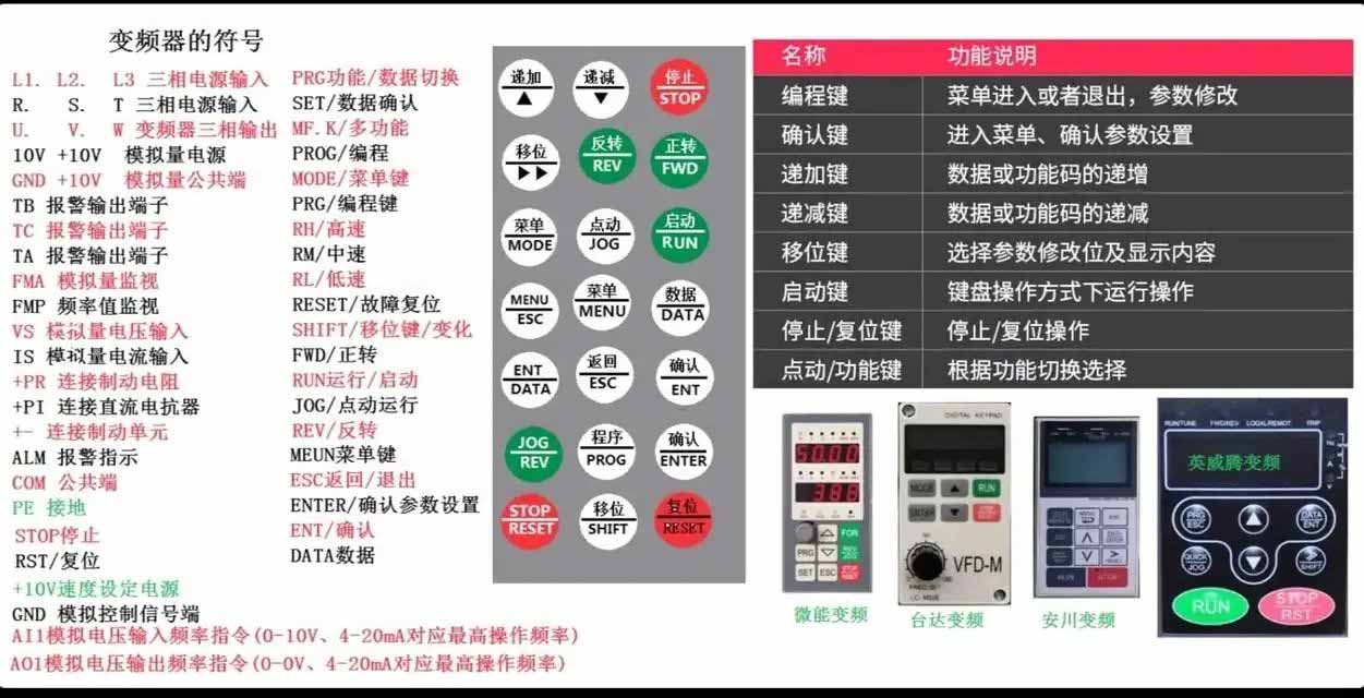 另外,變頻器面板上的常見按鍵含義如下: